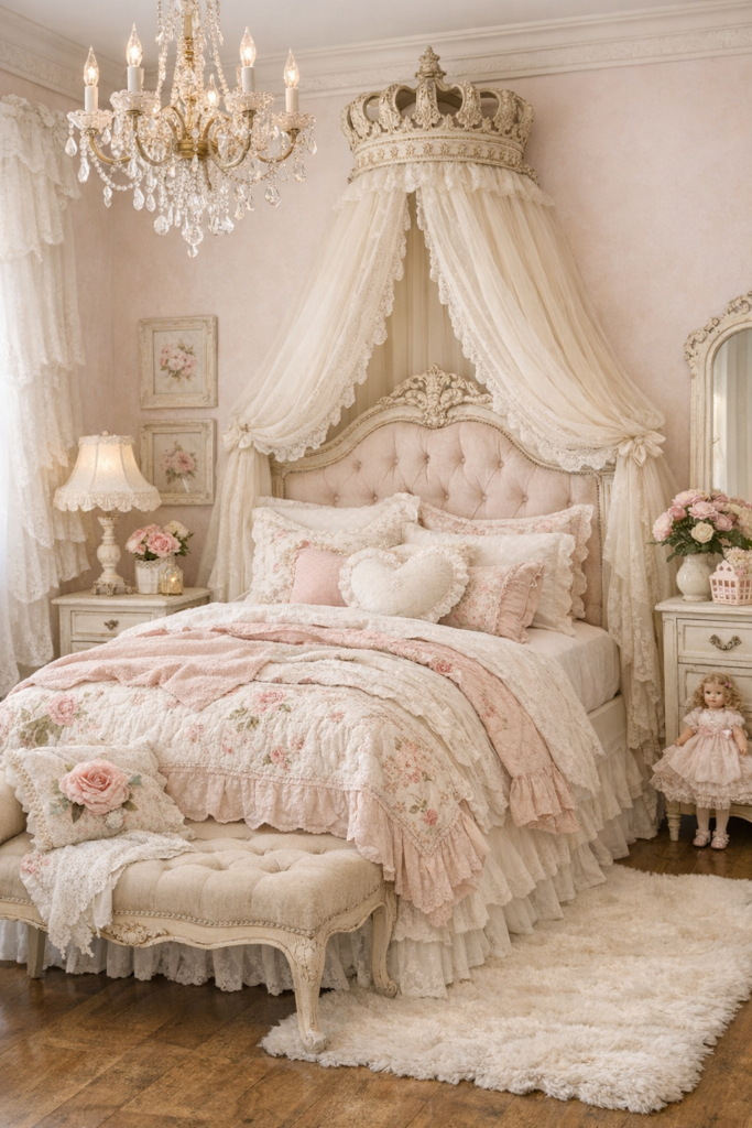 1. Embrace a Princess-Inspired Shabby Chic Bedroom