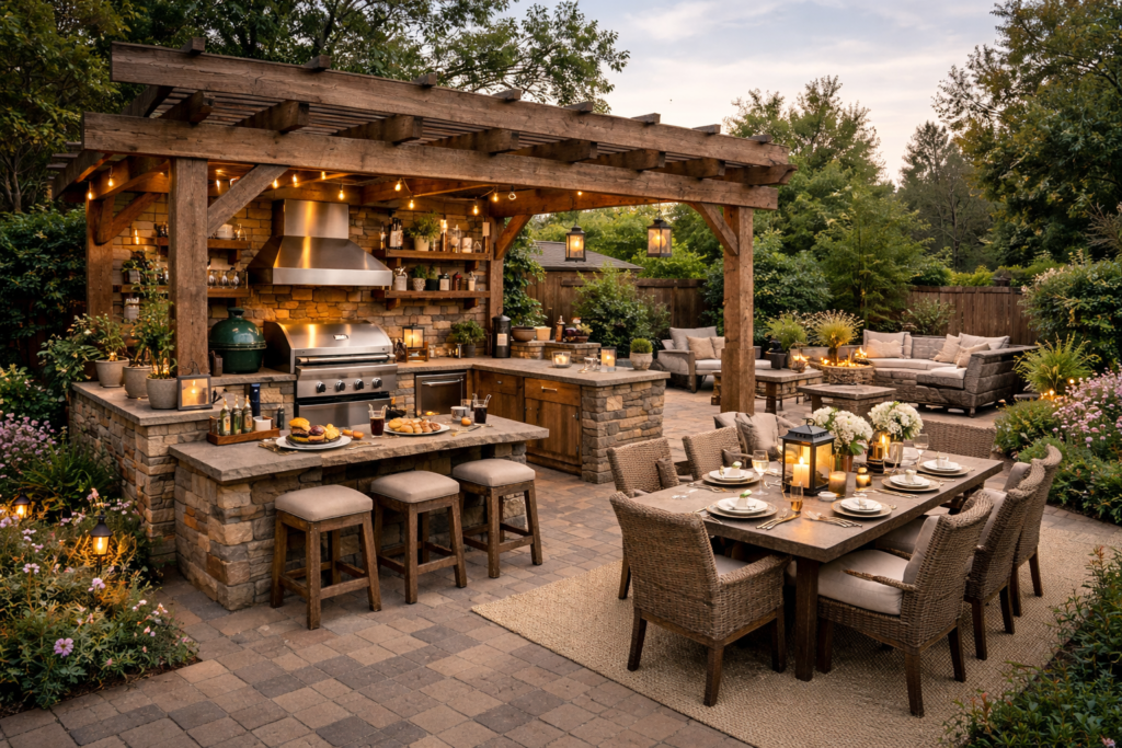 If you’re working on back yard bbq ideas grill area patio on a budget rustic, opt for reclaimed wood, DIY shelving, and budget-friendly pavers.