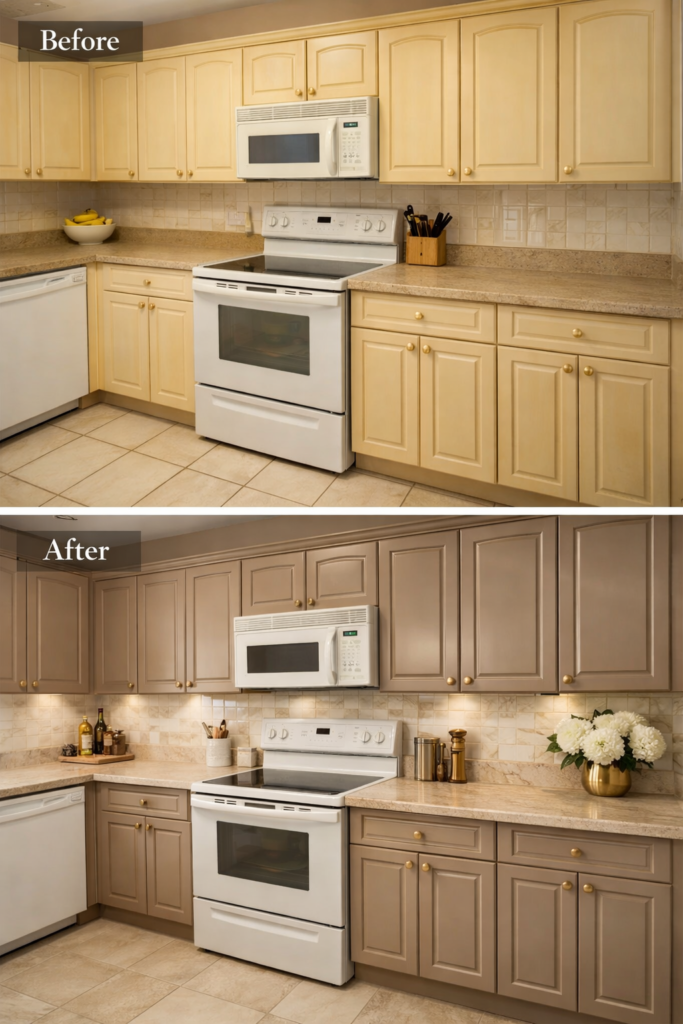 12. Beige Cabinet Revival – Classic European Kitchen Charm
