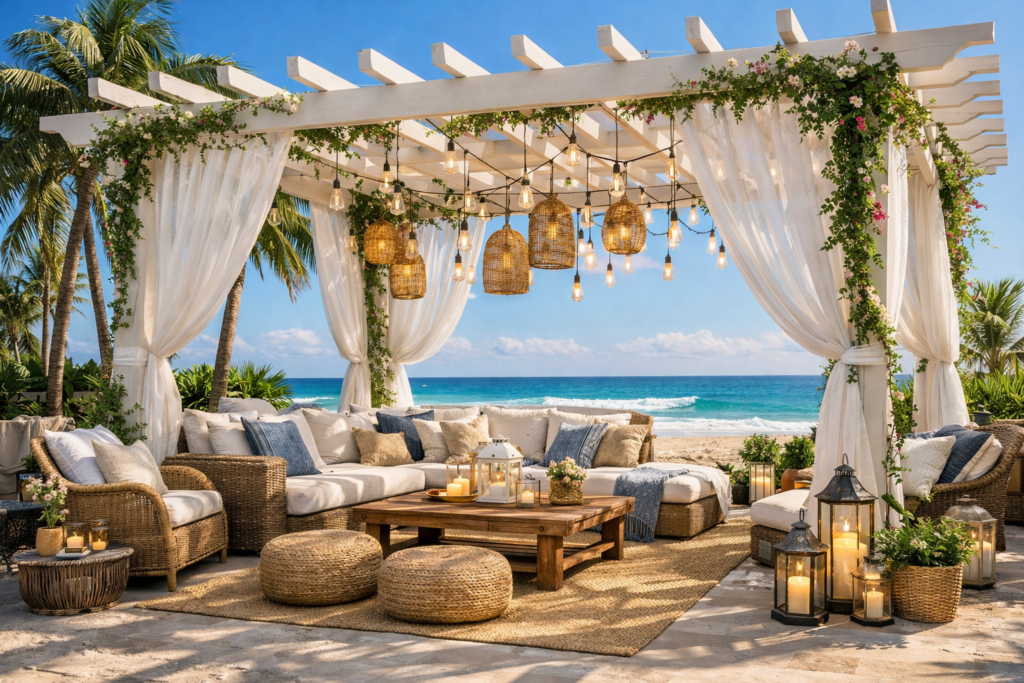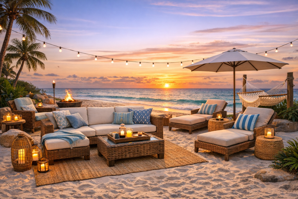 This transforms your space into a Luxury Beachside Patio Decor setting.