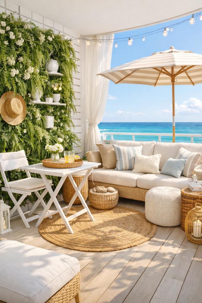This is ideal for apartment patios or Coastal Balcony Decor setups.