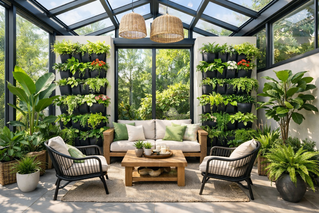 🌿 7. Indoor Sunroom Garden with Vertical Green Walls