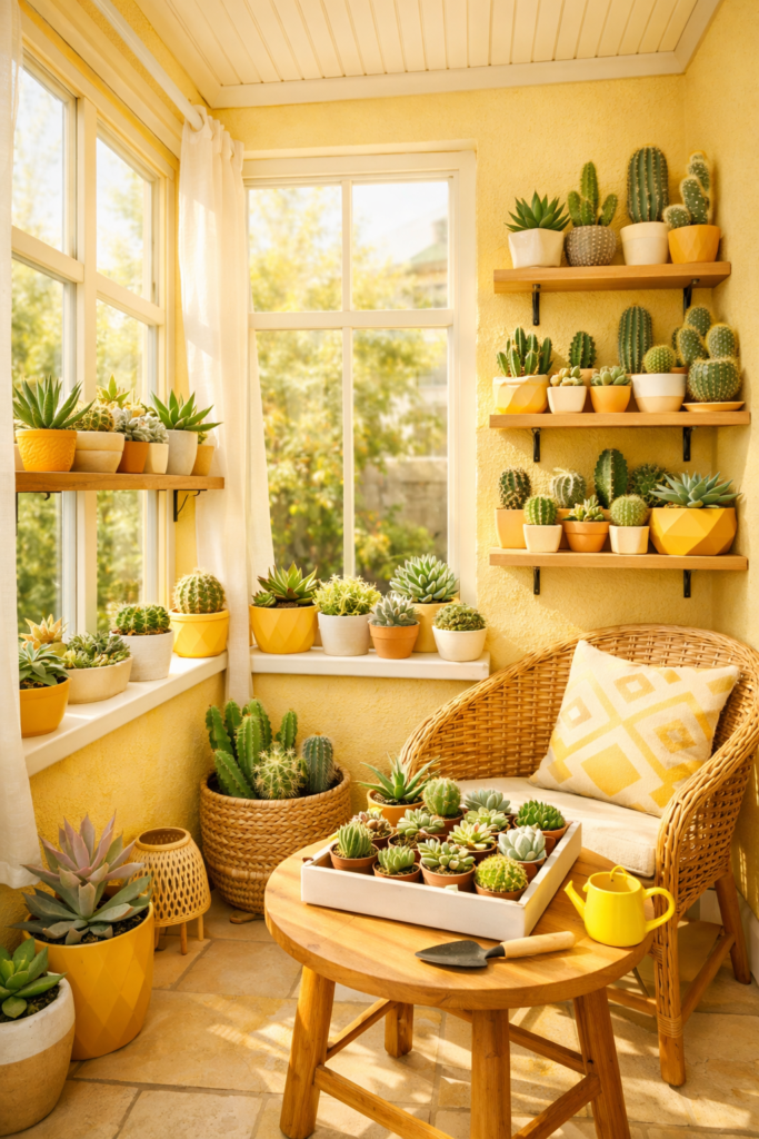 🌵 4. Small Sunroom, Big Impact with Succulents