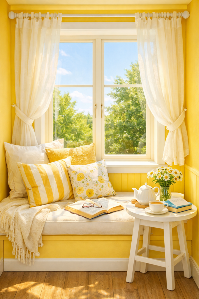 1. Sunny Yellow Window Alcove Reading Nook ☀️