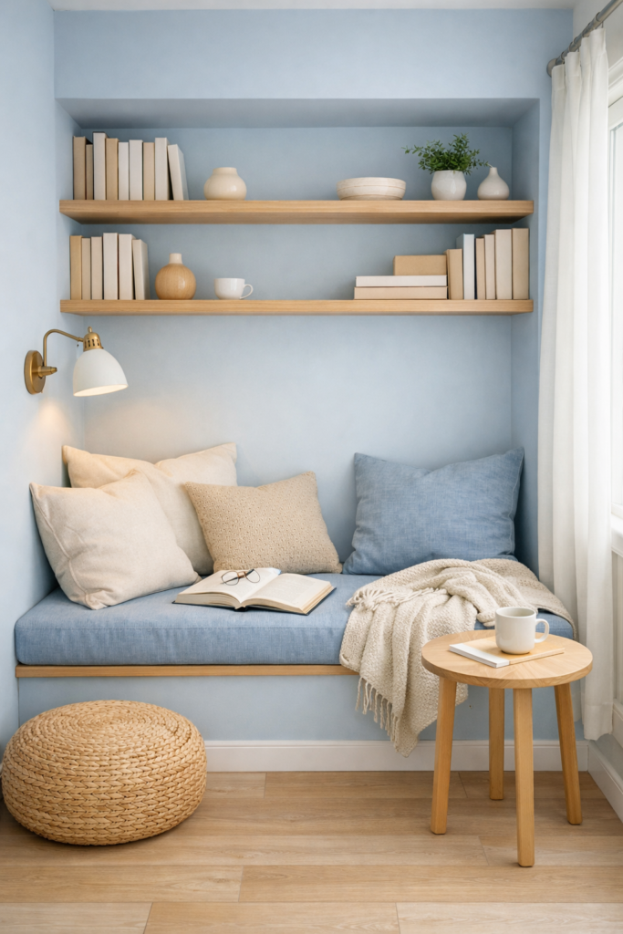 2. Calm Blue Scandinavian Reading Nook Alcove 💙
