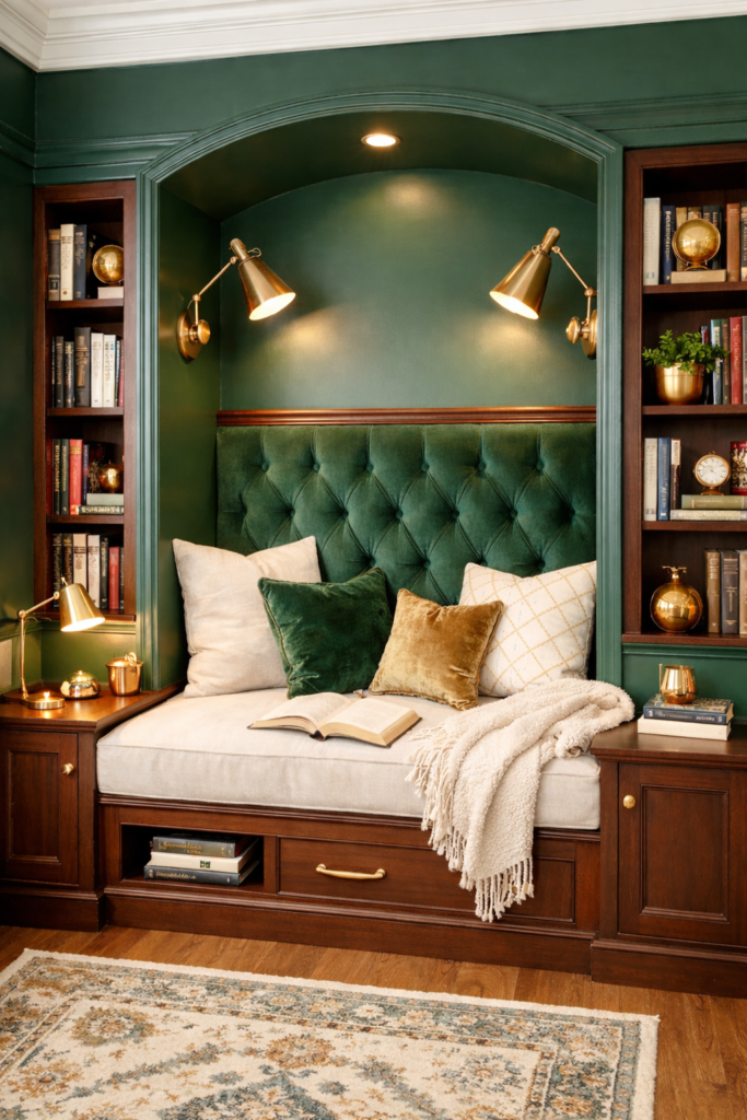 5. Emerald Green Built-In Reading Nook Alcove 🌿
