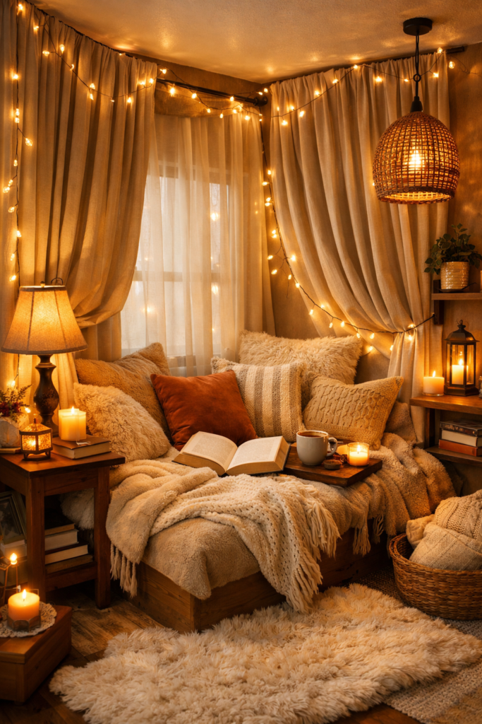 15. Ultimate Cozy Reading Nook with Soft Lighting ✨