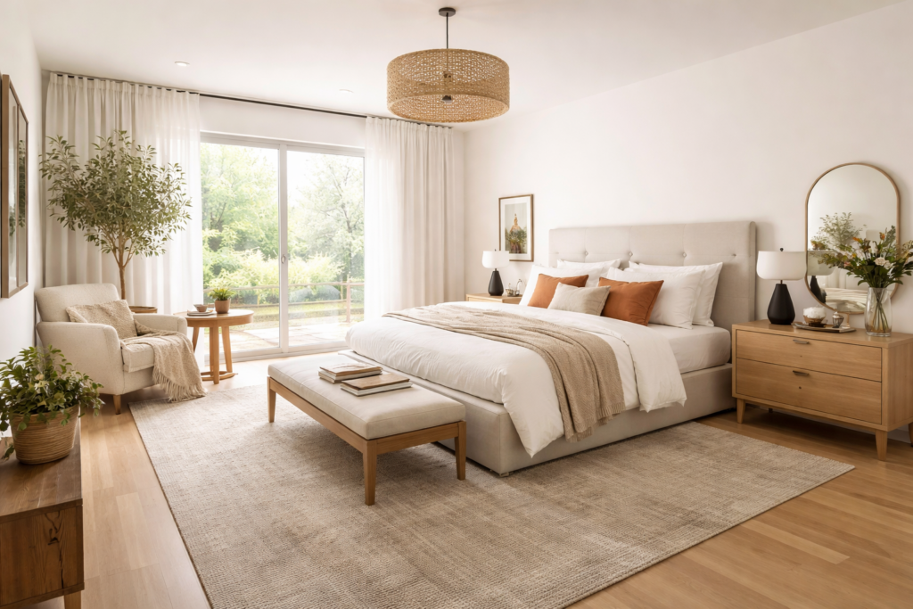 A lot of people jump straight into colors, bedding, or décor. Big mistake. The first thing that makes a bedroom feel expensive is the layout.