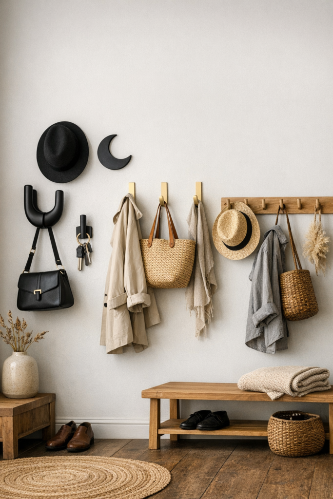 This layout doubles as functional art and works perfectly for Flat Entrance Decor Ideas and Entryway Inspo Modern looks. If you love organic textures, explore more ideas in this guide to organic modern entryway decor ideas.