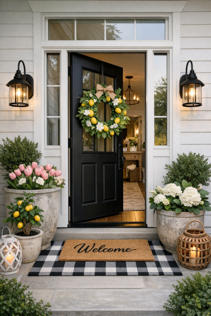 13. Front Door Exterior Decor & Open Entrance Styling 🌸