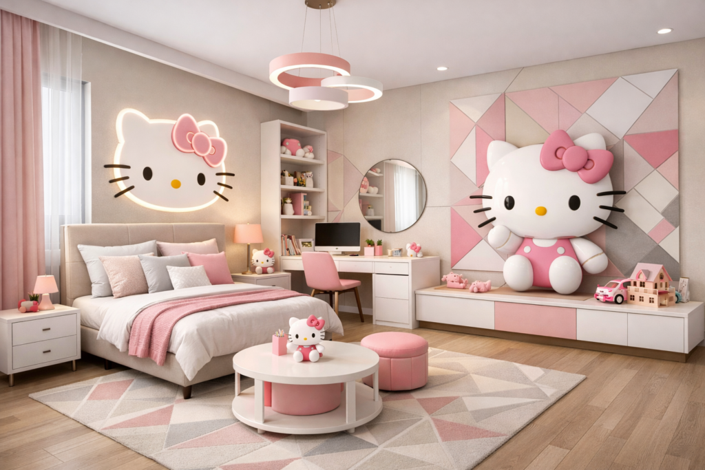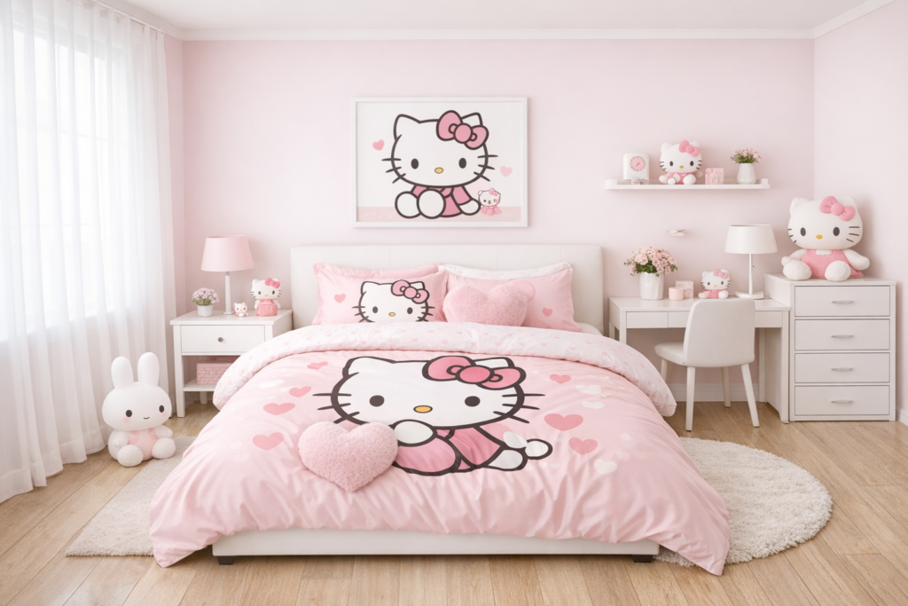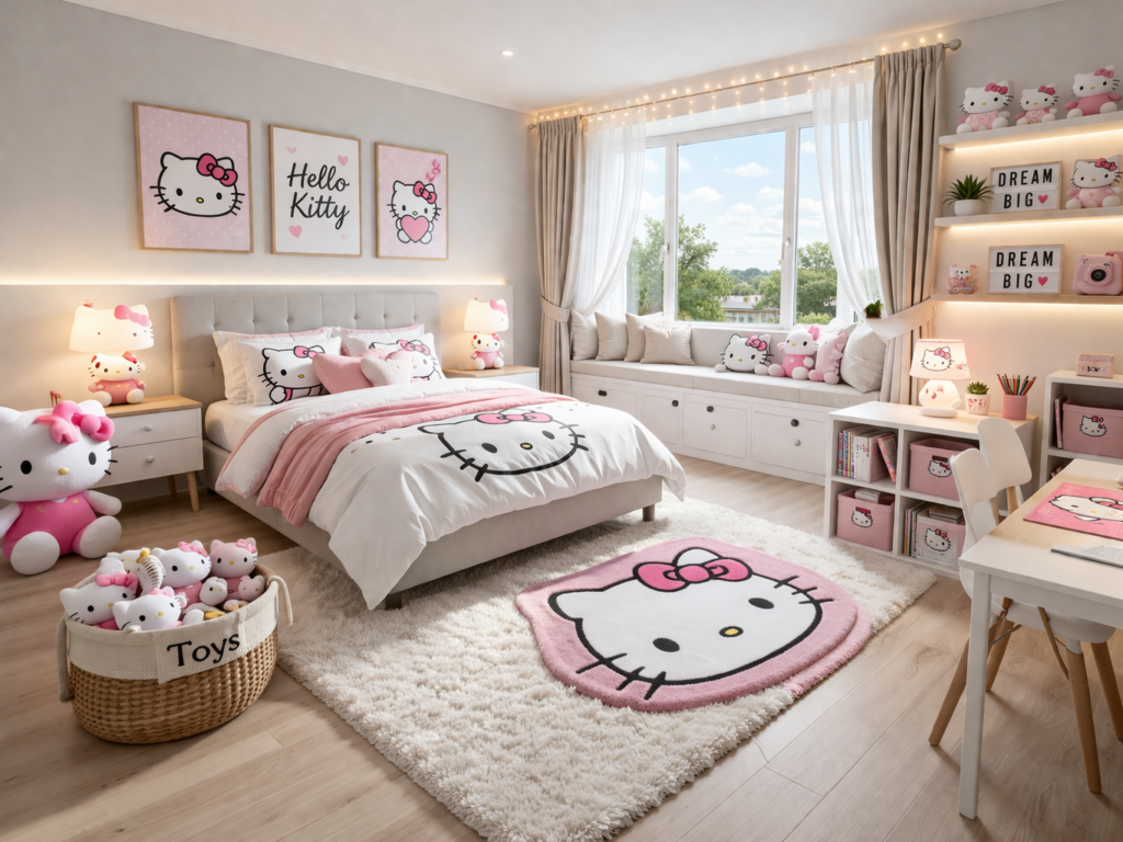 Don’t overdo Hello Kitty—mix it with neutral tones for a Stylish Room look.