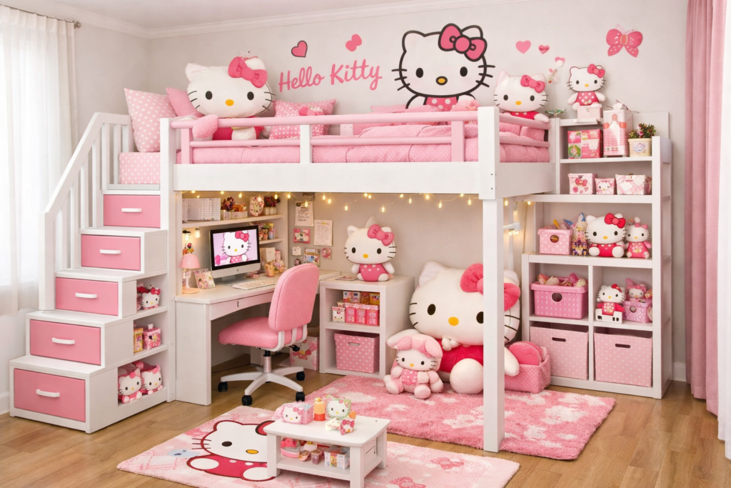7. Loft Bed Hello Kitty Setup for Small Rooms 🛏️
