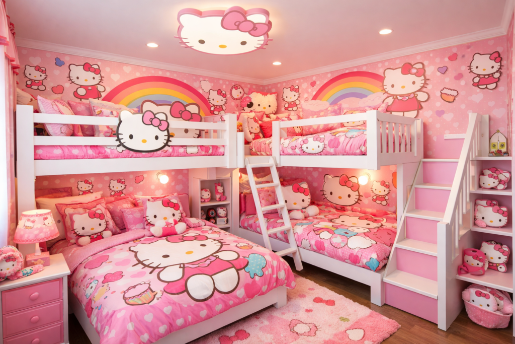 11. Bunk Bed Hello Kitty Theme for Multiple Kids 🛌