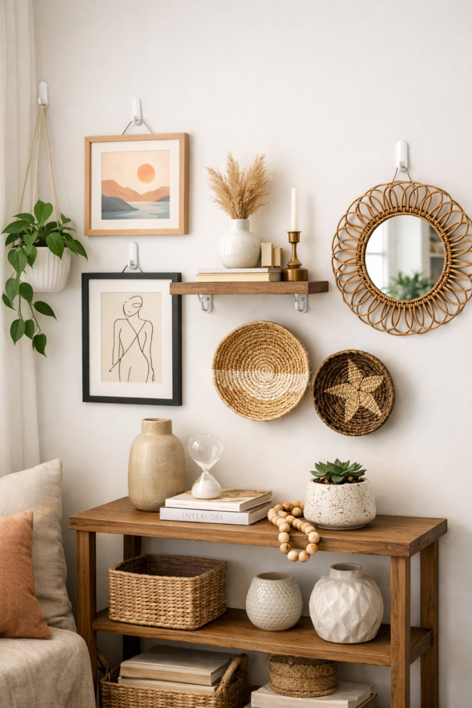 These techniques upgrade small wall decor ideas while staying damage-free.