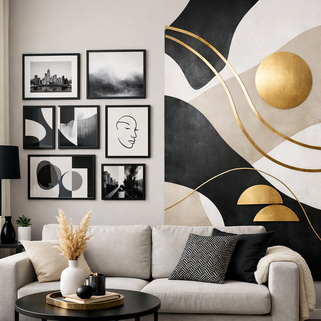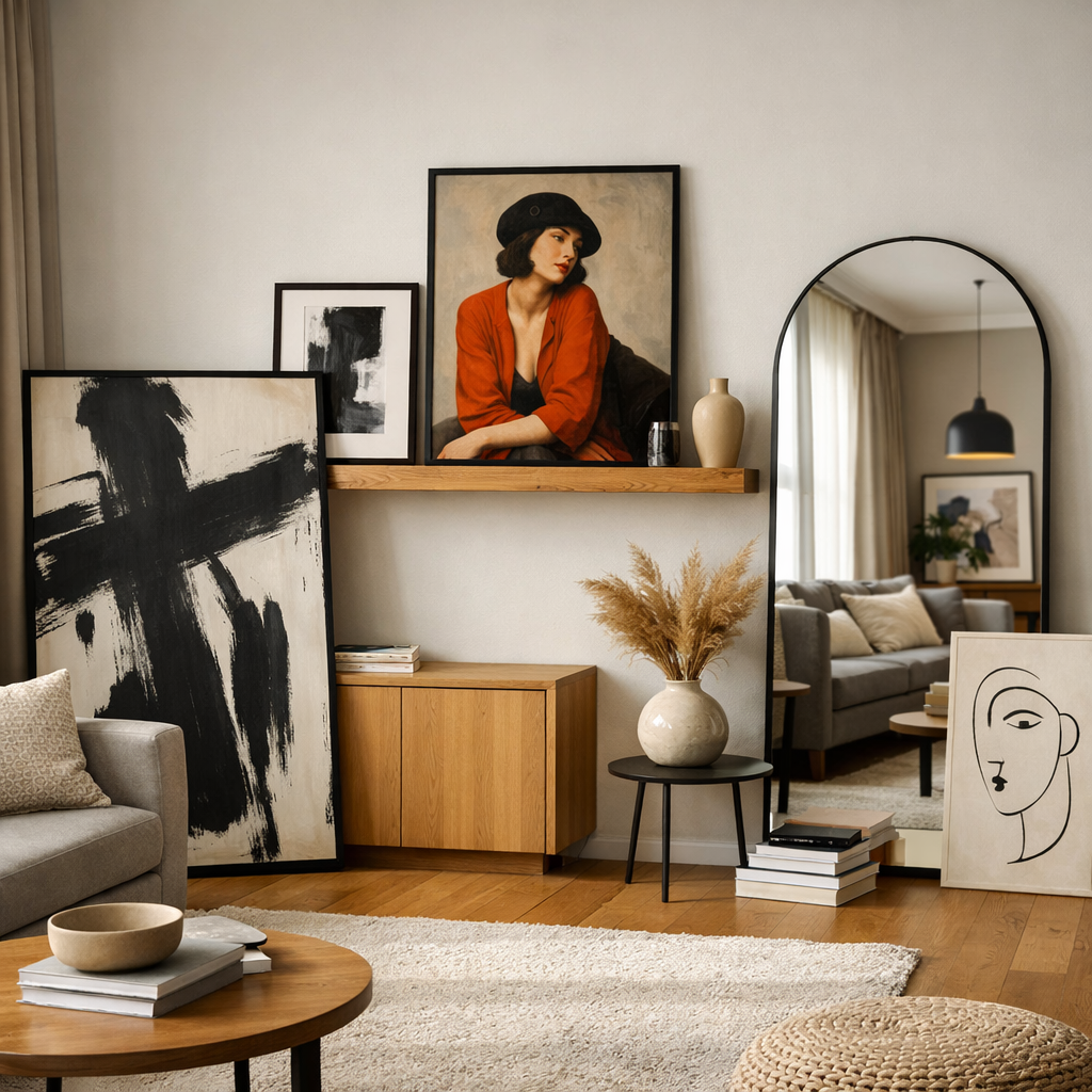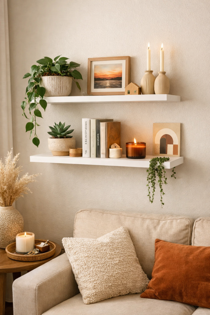 This works beautifully for modern apartment wall decor and gives a relaxed, designer feel — perfect for cozy apartment decor ideas.