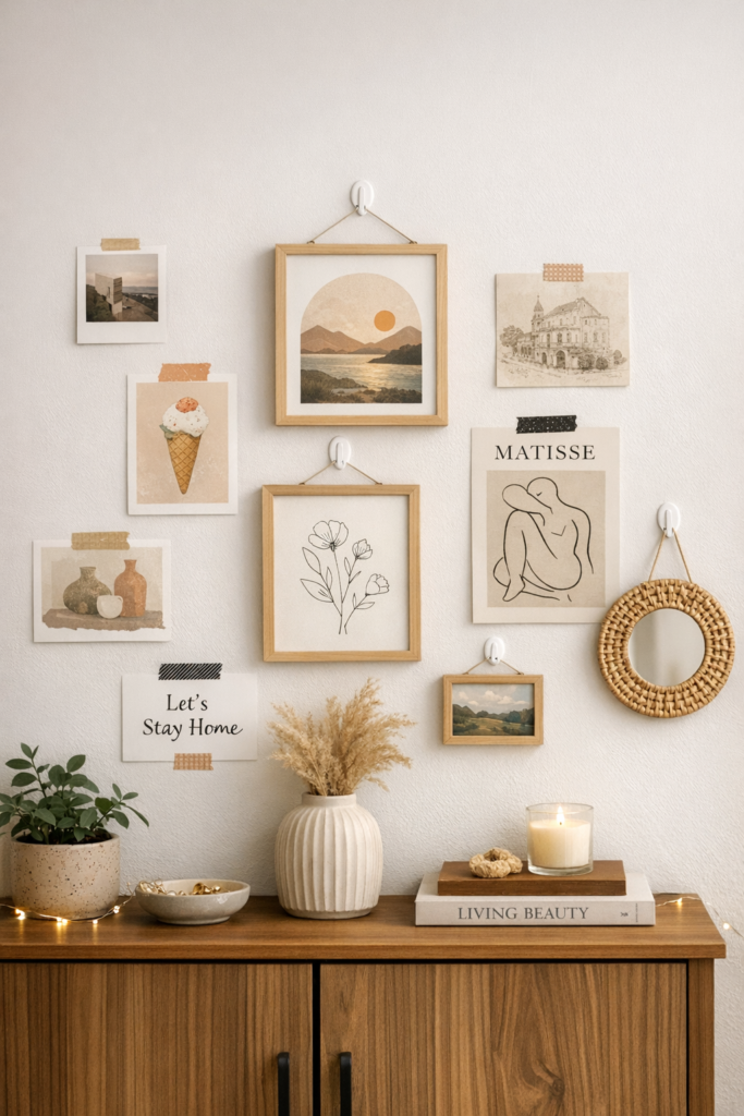 5. Create a Small Space Aesthetic Decor Gallery Wall 🎨
