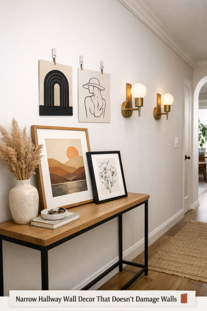 10. Narrow Hallway Wall Decor That Doesn’t Damage Walls 🚪