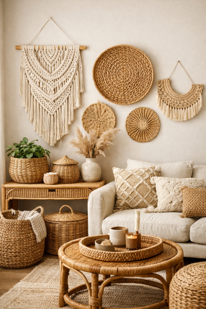 12. Boho Renter Decor Ideas with Natural Textures 🌿