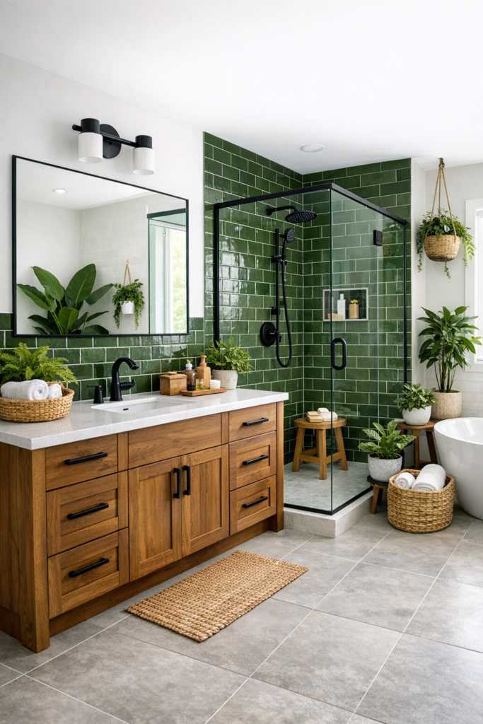 A Green Bathroom Modern style introduces a calming natural feel while teaching kids about nature. Soft green tiles or a Green Tile Bathroom backsplash can add life to your House Bathroom design.
