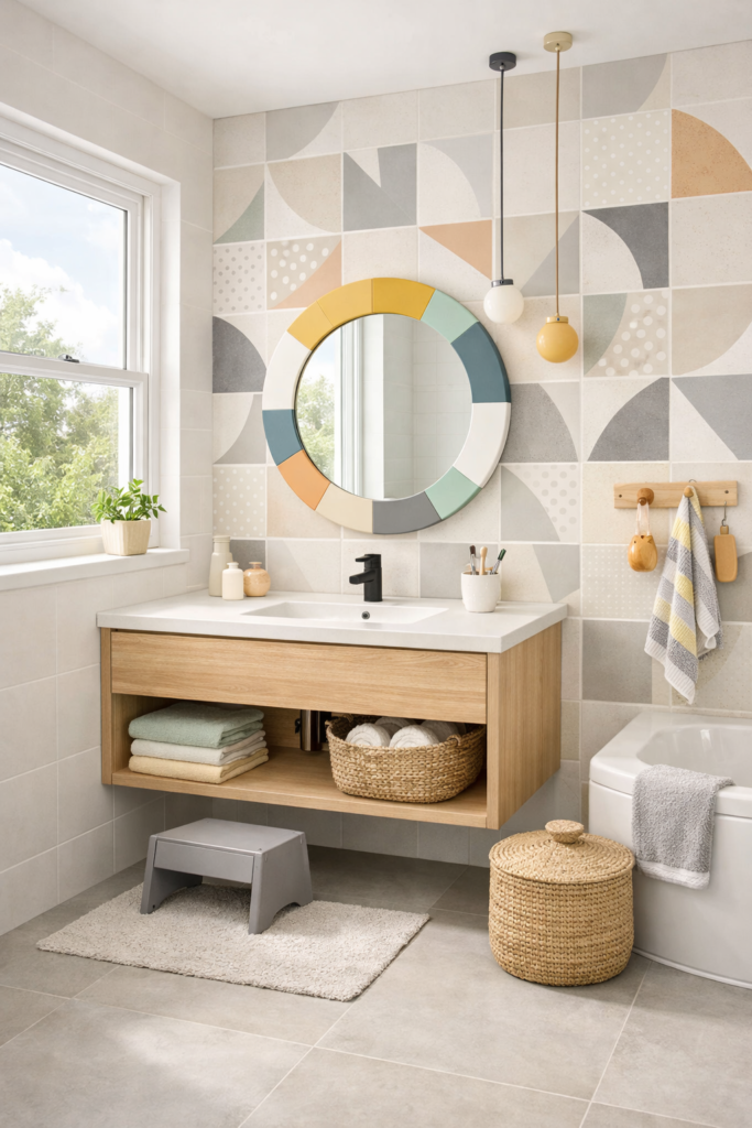 Tiles can turn a basic bathroom into an exciting space for children. A Bathroom Tile Combination with playful shapes or patterns can instantly transform the room.