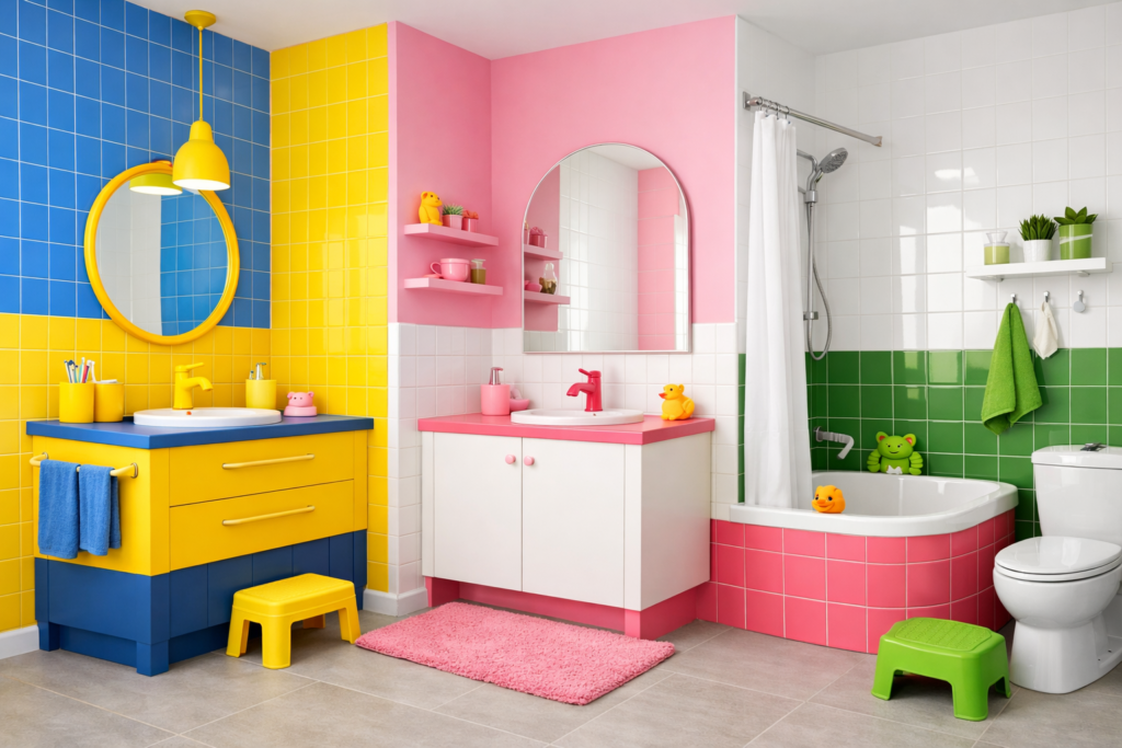 Color blocking is a playful trend in Latest Bathroom Ideas. Using bold color sections on walls or tiles creates a lively space kids love.