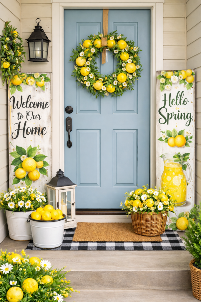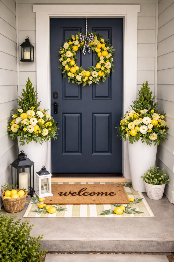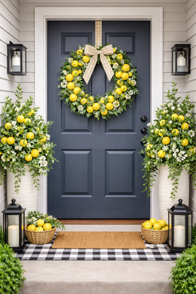 This instantly gives you that spring front door decor lemon look that’s both stylish and welcoming.