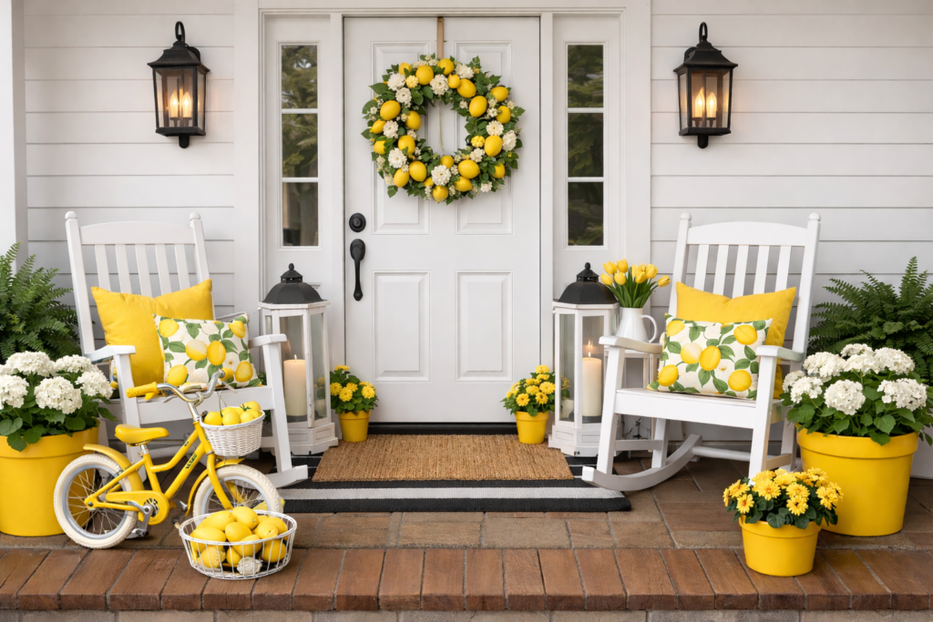 If you have a smaller porch, don’t worry—lemon decor works beautifully in compact spaces.