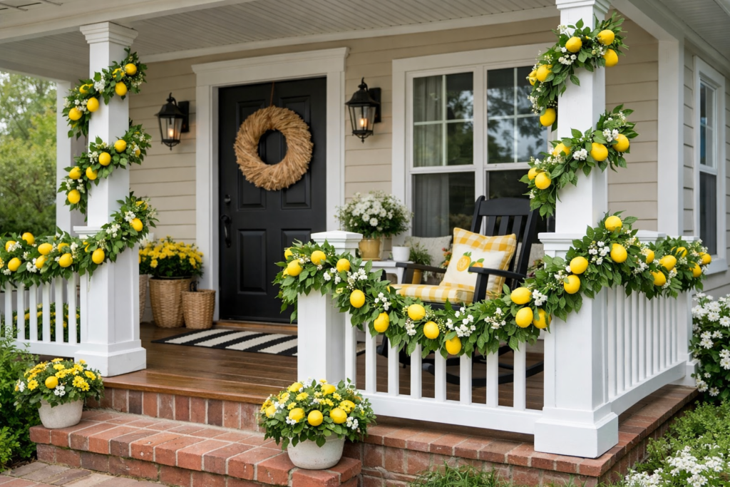 6. Lemon Garland Front Porch Styling for Railings 🍋🌿