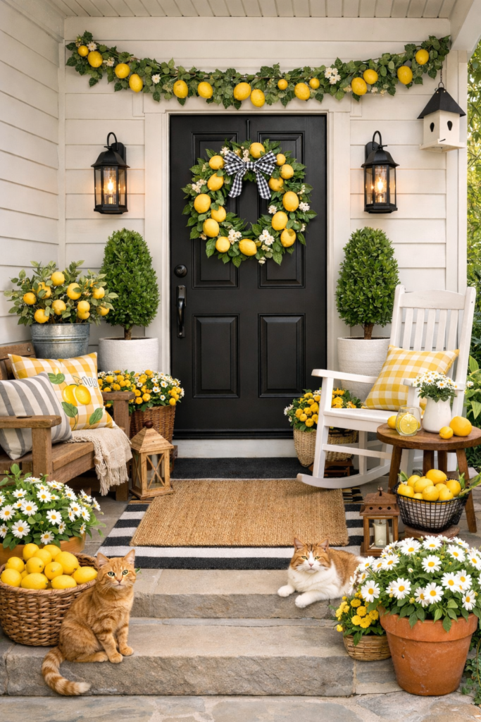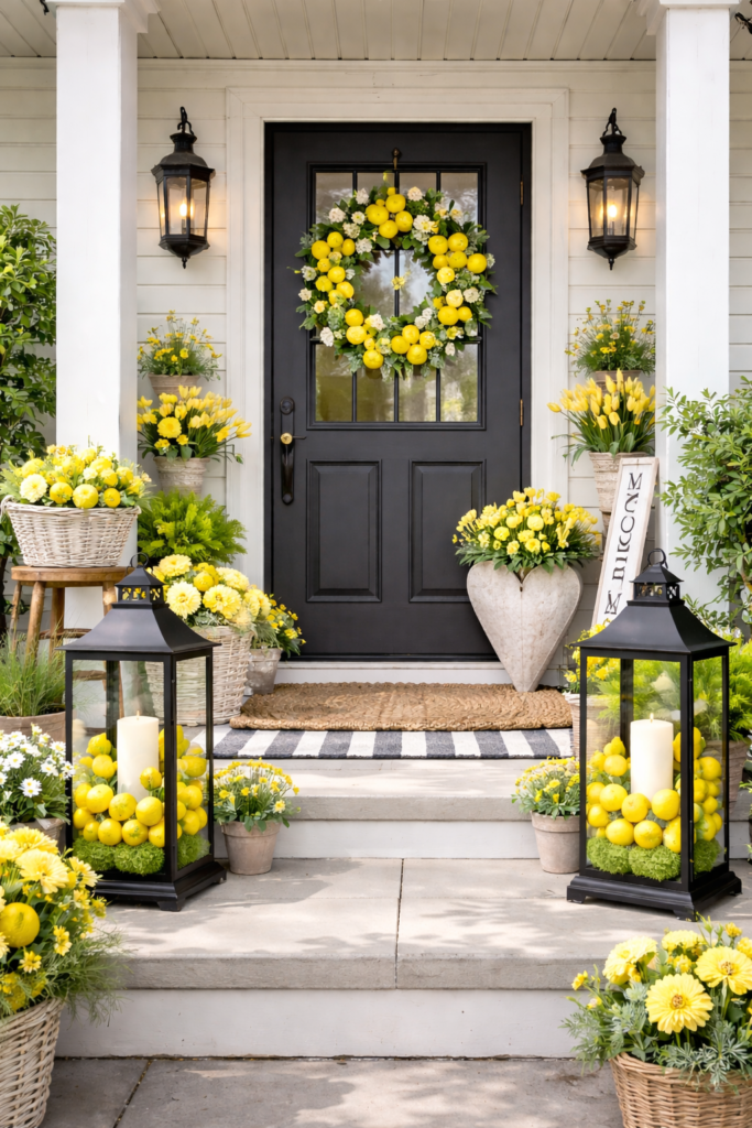 15. Spring Porch Decor Ideas 2026: The Lemon Trend Isn’t Going Anywhere 🍋✨