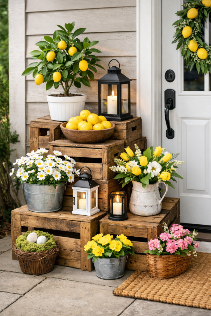10. Lemon and Greenery Porch Decor with Rustic Crates 🍋