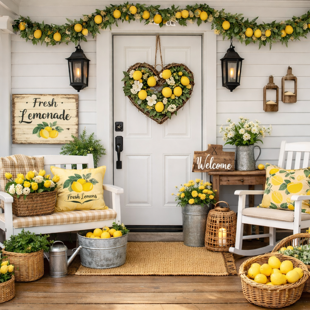 Lemon decor is the perfect way to create a bright and welcoming porch that feels fresh, lively, and effortlessly stylish. Whether you’re decorating with garlands, planters, lanterns, or DIY crafts, this theme brings instant happiness to your outdoor space.