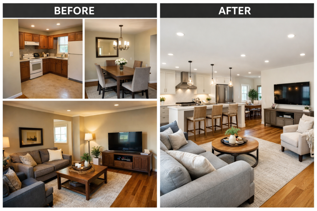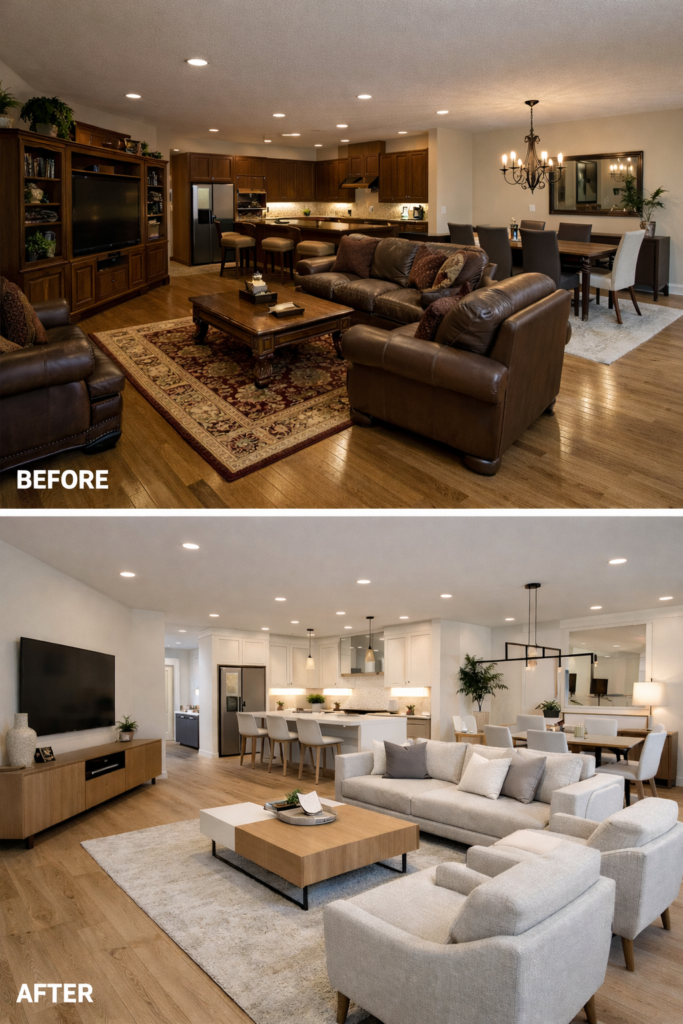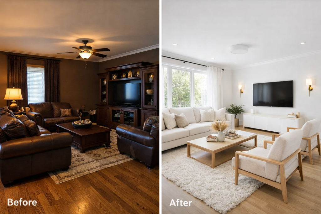 The beauty of transformation lies in possibility. Whether it’s a simple Room Makeover, a bold House Remodel, or a complete Modern House Makeover Before After, your living room can look entirely different with thoughtful design decisions.