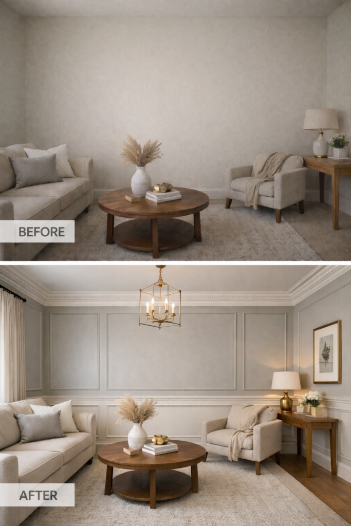 3. Basic Builder-Grade to Luxury Wainscoting Charm 🖼️
