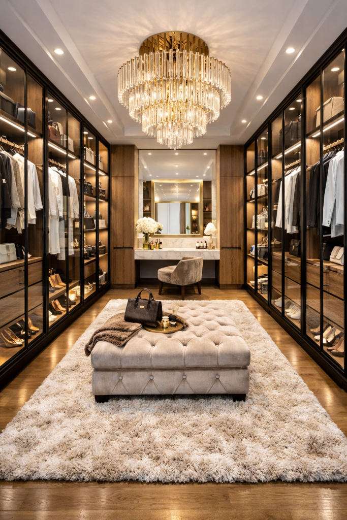 Pair this with walk in closet luxury design ideas and walk in wardrobe luxury decor such as plush rugs and statement lighting to create a boutique-like experience.
