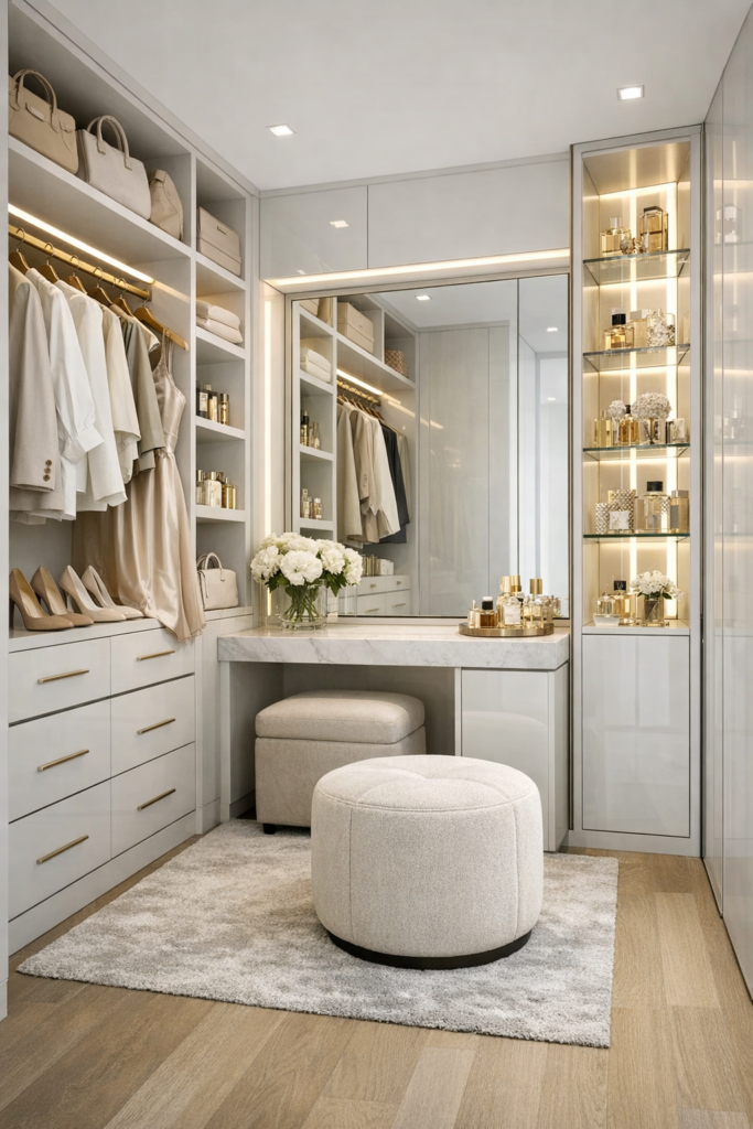 Let’s dive into the most captivating luxury dressing room ideas that blend beauty, comfort, and practicality. 💫
