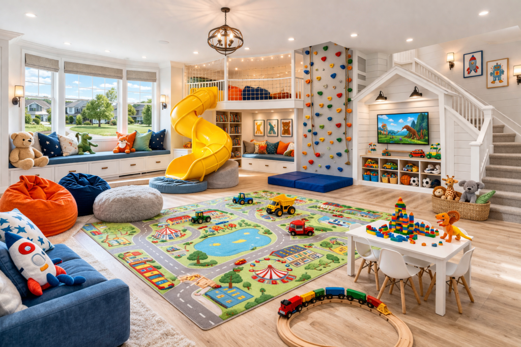 This transforms the space into a magical playroom ideas zone.