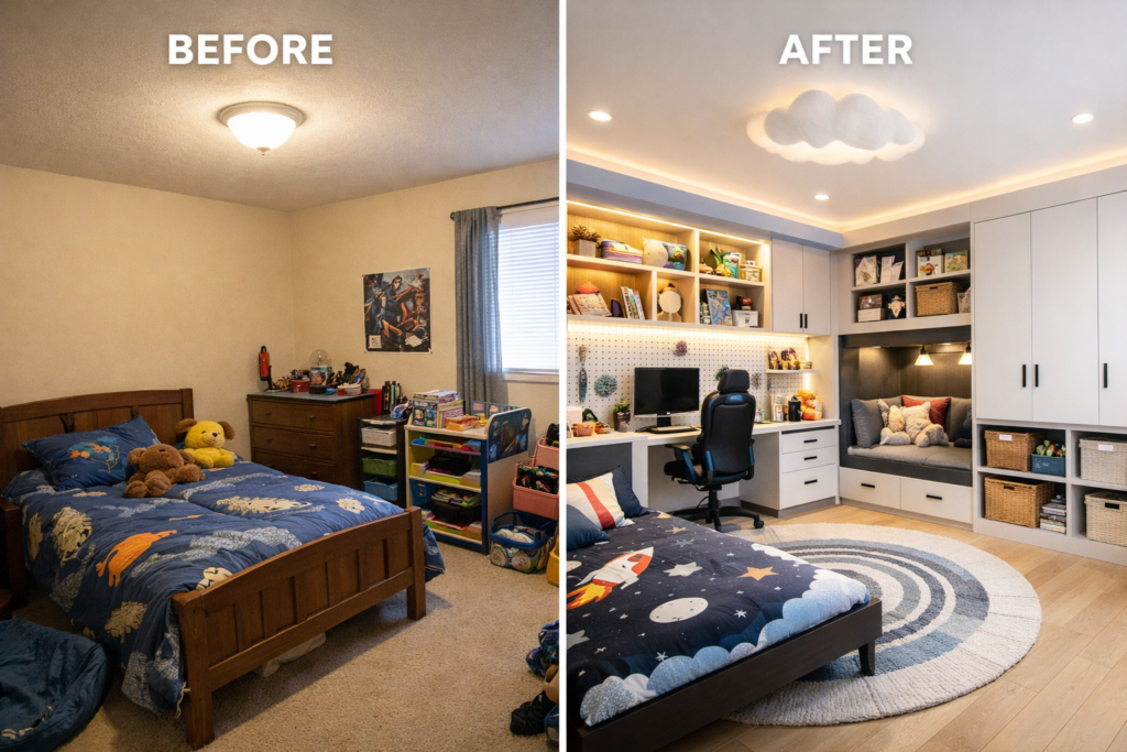 🔥 11. Kids Bedroom Glow Up (Before & After Magic)