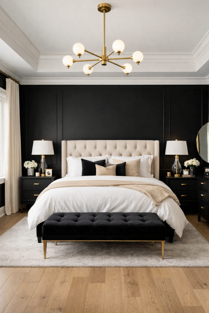 Searches for bedroom paint ideas master color schemes black are up because homeowners want bold contrast.