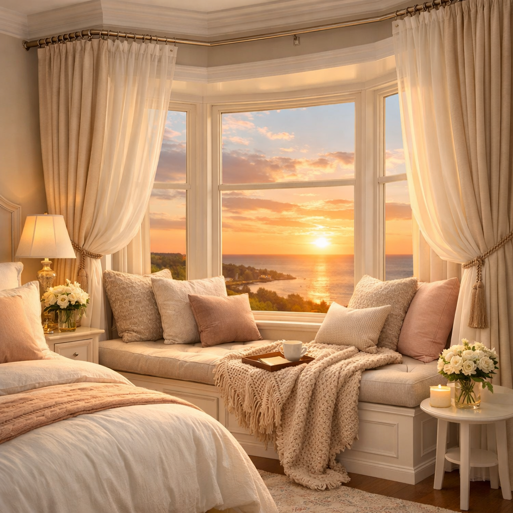 2. Design a Window Seating Bedroom Corner 🌅