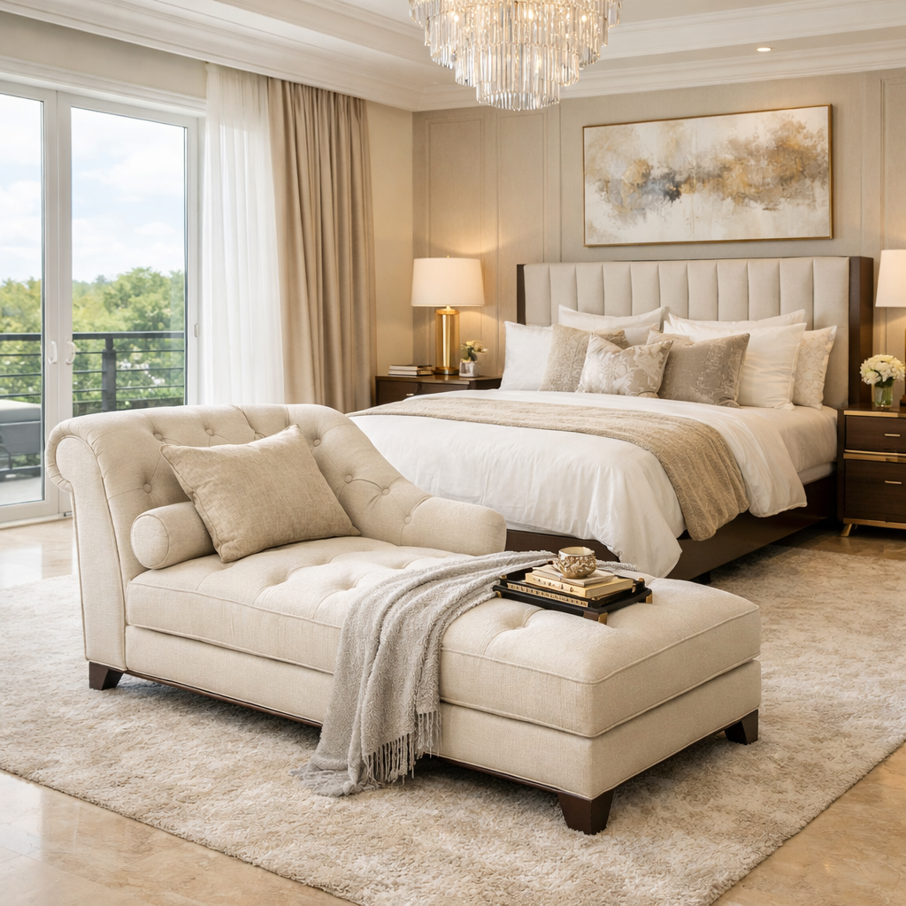 A Master Bedroom With Sitting Area transforms your bedroom into a relaxing sanctuary. Whether you choose a Bedroom Chaise Lounge, a Window Seating Bedroom, or a Luxury Sofa, adding a sitting area enhances comfort and elegance.