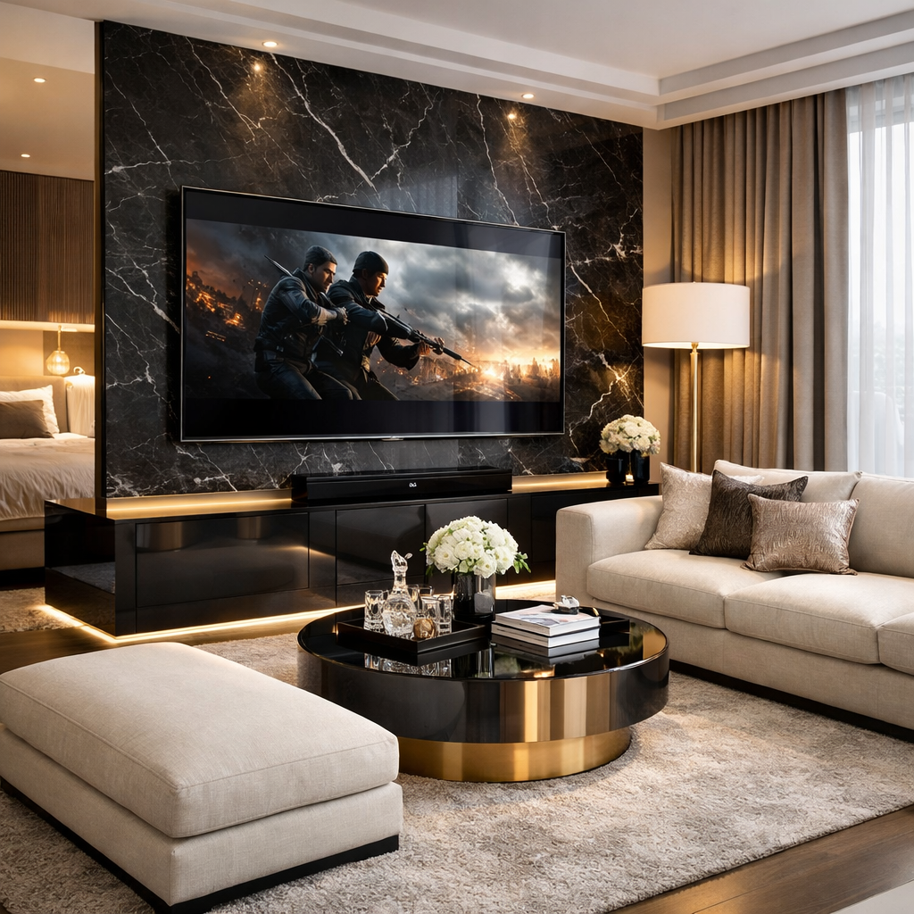 This works especially well in Modern Luxury Bedroom With Large Tv layouts.