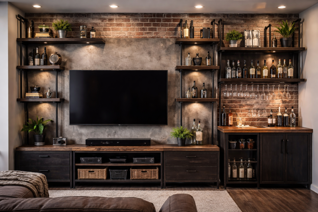You can even add a mini bar section for extra flair—this idea blends well with a Diy Bar & Accent Wall style.