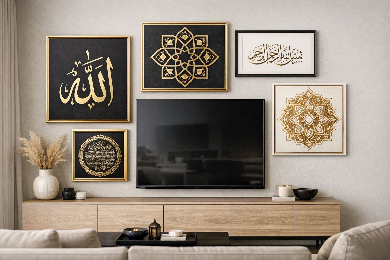 These Inspirational Islamic Decor Ideas work beautifully with modern interiors, especially when paired with gold, black, or neutral frames.