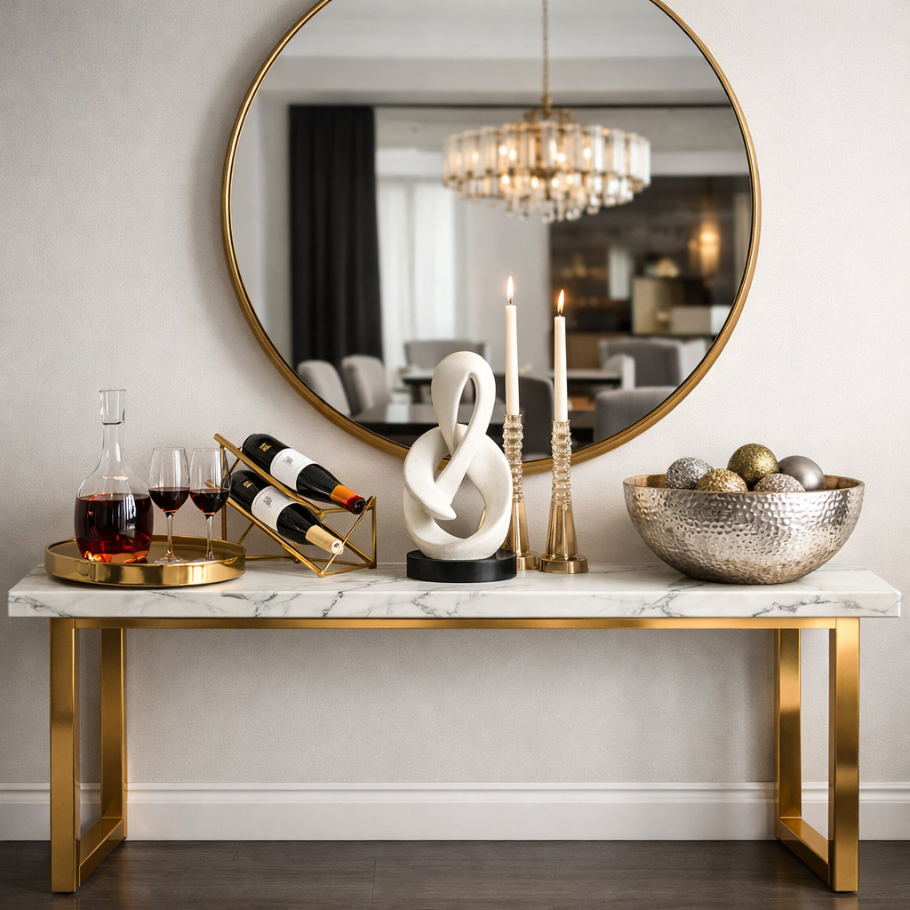 In glamorous interiors, console tables often feature marble tops or metallic legs to match Modern Luxurious Dining Room aesthetics.
