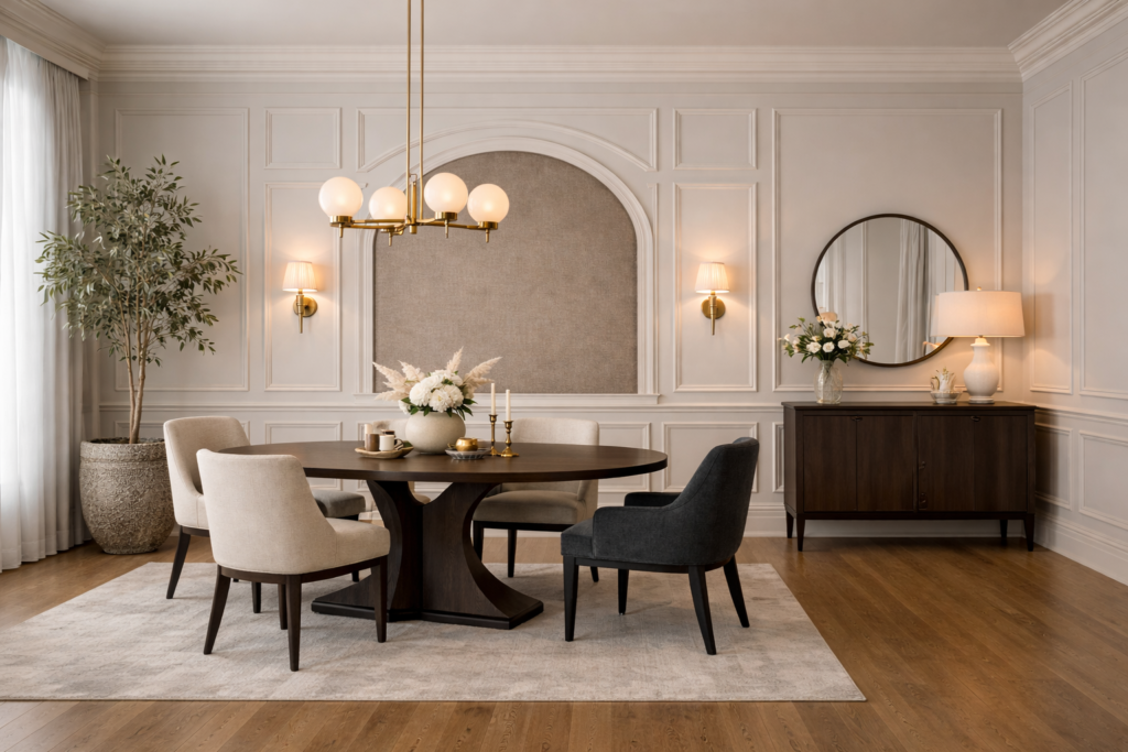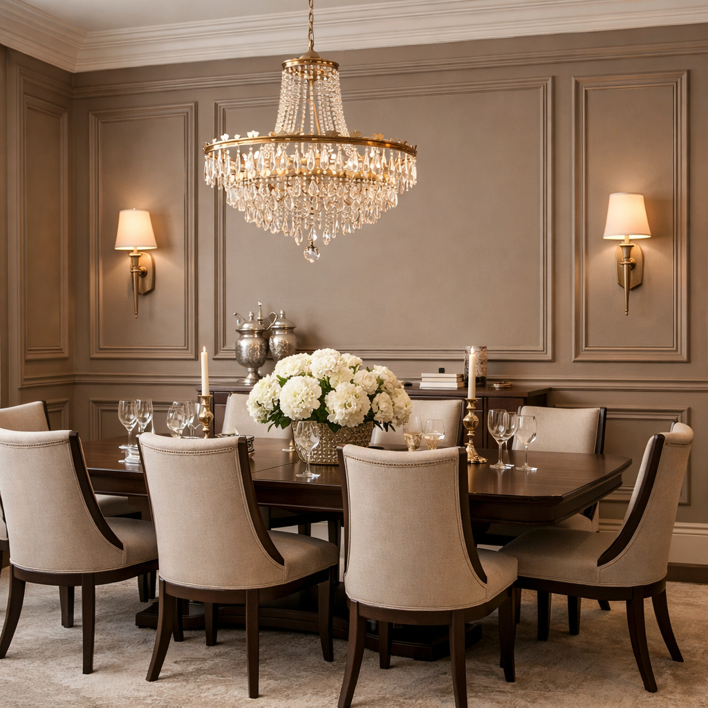 These design features are commonly used in Luxury Dining Room Decor Classy interiors and help create a visually rich background without adding clutter.