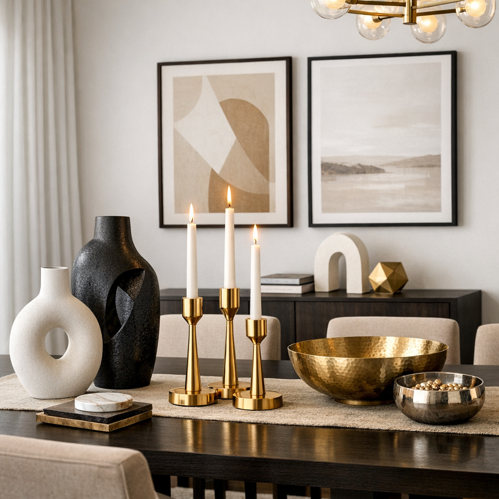 Gold accents such as chandeliers, mirror frames, or Metal Decorative Items add a luxurious touch without overpowering the room.