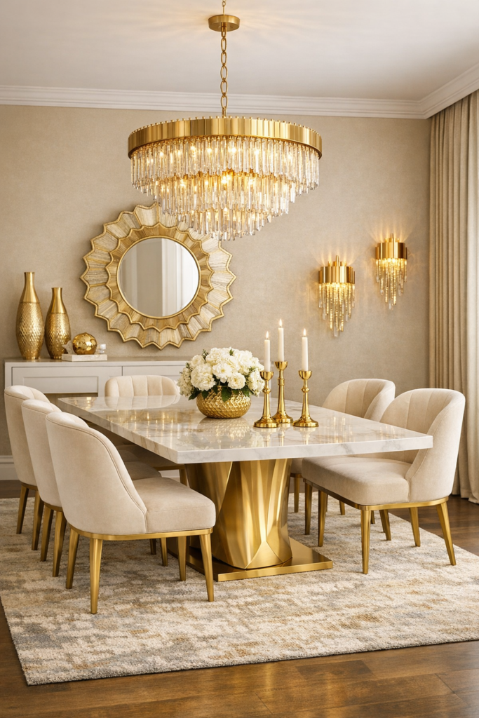 1. Create a Beige and Gold Dining Room for Instant Glam ✨