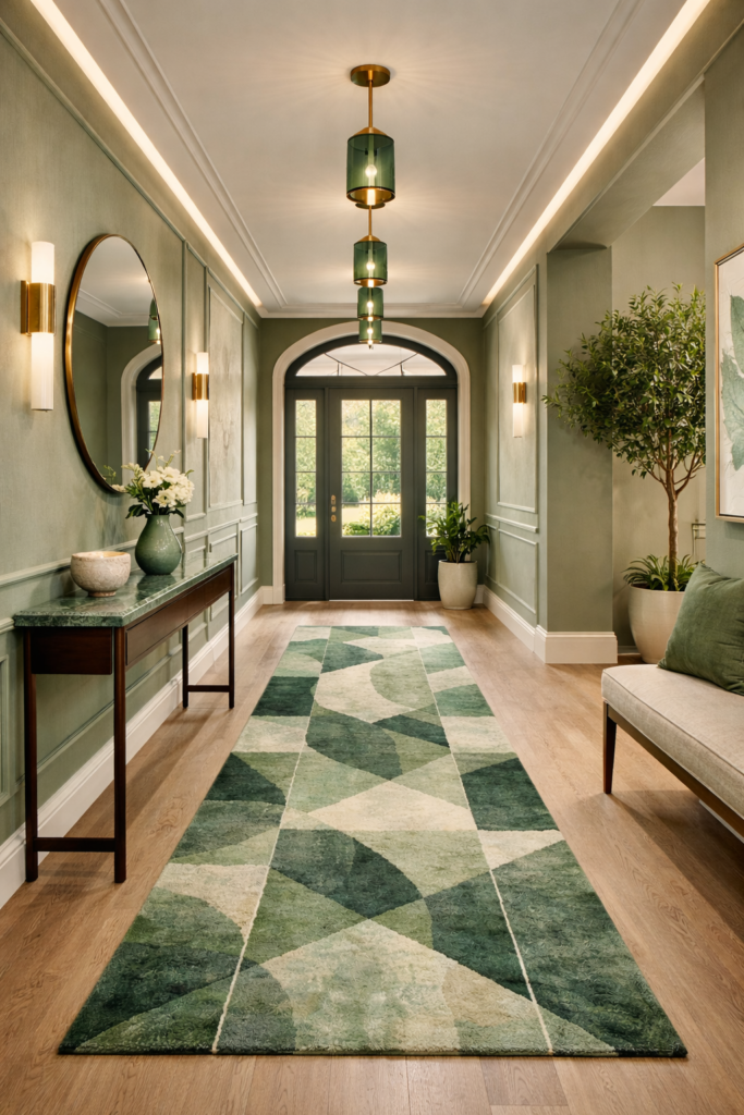 For long corridors, Hallway Entrance Ideas Modern focus on rhythm and flow. Use runners, wall art, and subtle lighting to enhance House Hallway Design while keeping it visually calm.