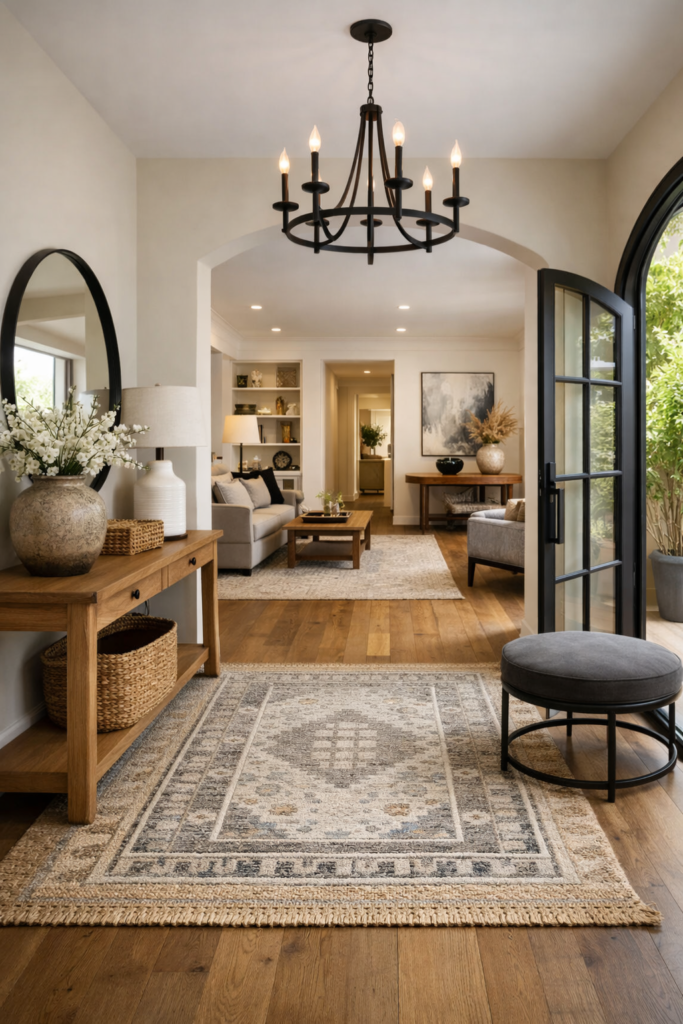 An Open Entrance benefits from visual zoning—rugs, lighting, or furniture placement. This approach enhances Decor Entrance Home styling while maintaining openness.