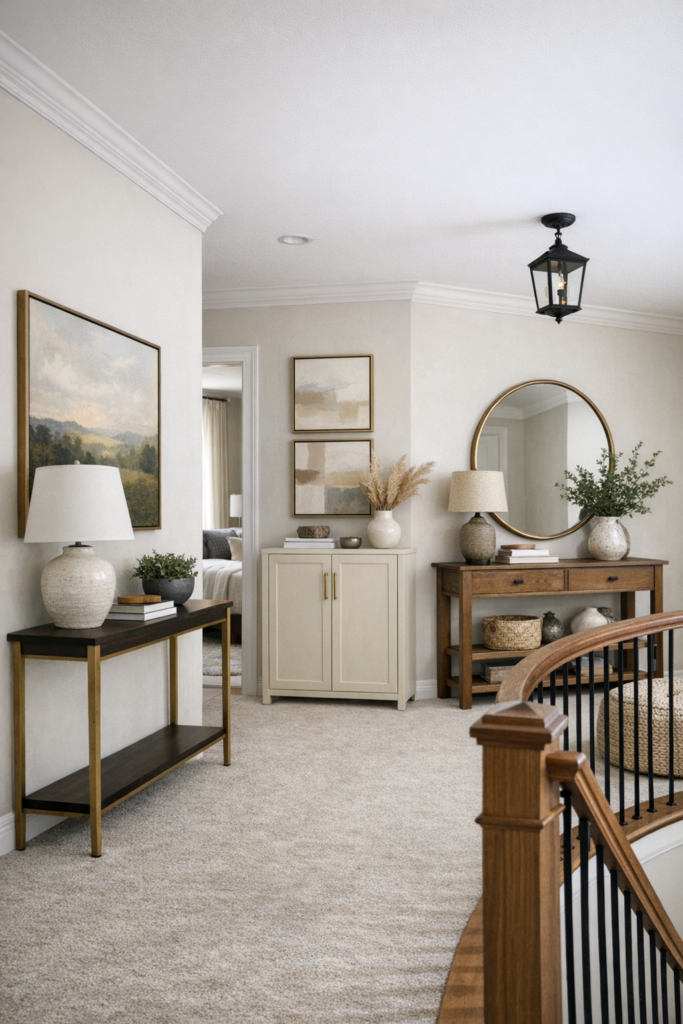 Upper levels deserve attention too. Thoughtful Landing Furniture Ideas such as slim cabinets or art consoles elevate Upstairs Decor and maintain consistency throughout the home.